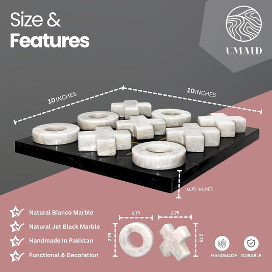 Luxury Black & White Marble Tic-Tac-Toe Game Set